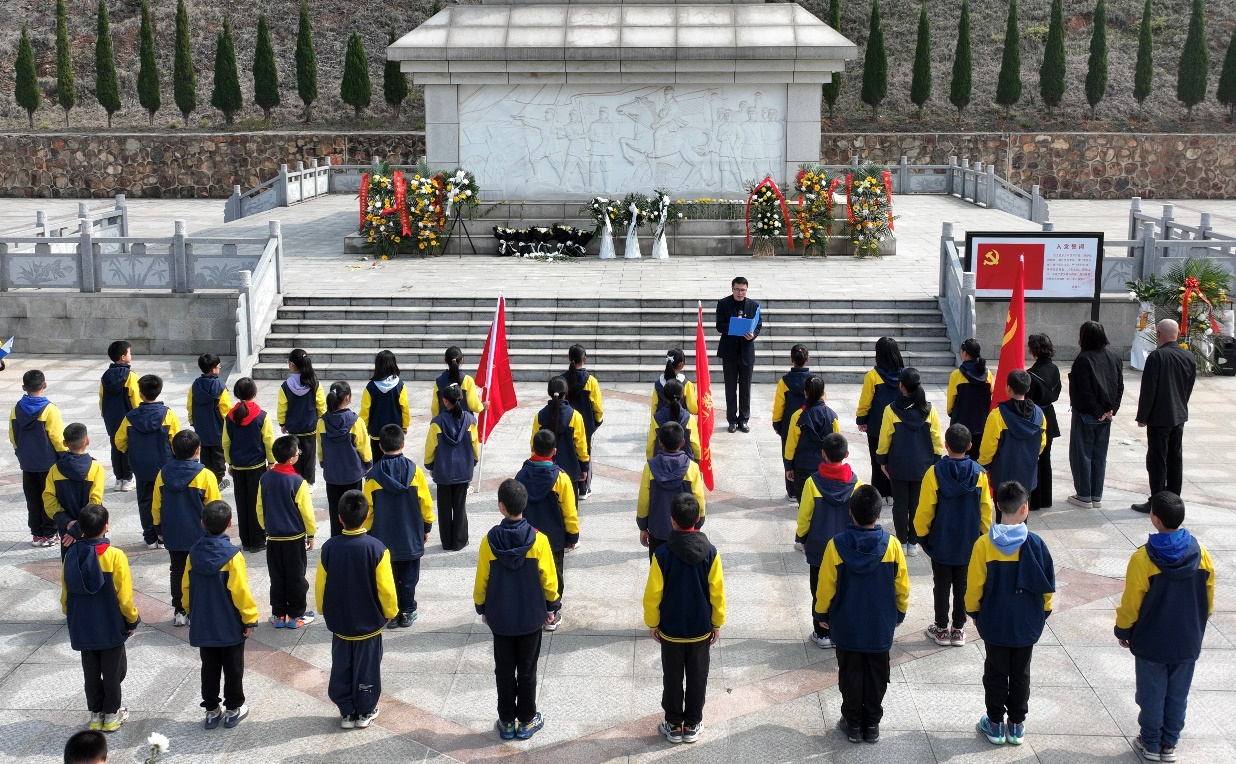 随后,黄西华校长进行发言,共同追忆革命英雄的不朽事迹,弘扬爱国之心和报国之情,鼓励少先队员们珍惜生命,珍惜亲情,养成良好的习惯,努力学习,为实现中国梦而努力奋斗。最后,队员们在烈士纪念碑前宣下誓言!