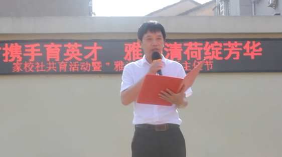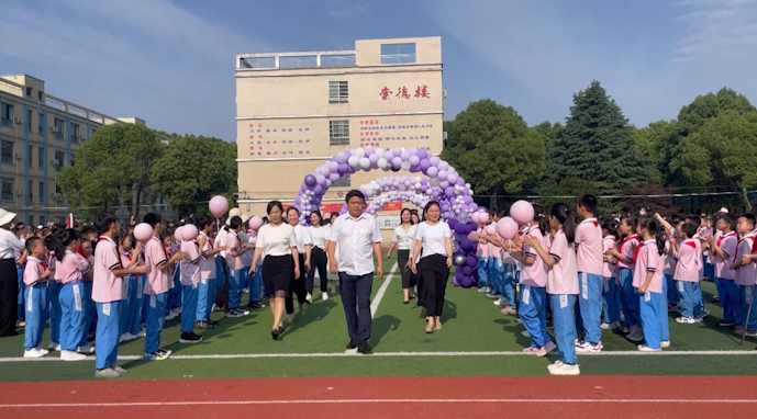 岳阳市红领巾电视台(记者余心怡、实习记者杨帆)五月榴花照眼明,枝间时见子初成。2023年5月18日,岳阳县荷花塘小学鲜花烂漫,校园处处充满节日的气氛,家校社共育活动暨首届班主任节如期举办。一大早,一百多位家长代表、社区领导、县教体局领导和全校师生来到美丽的校园共同庆祝此次活动。