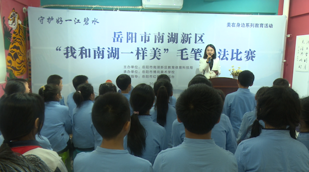 岳阳市红领巾电视台:“腹有诗书气自华,胸藏文墨虚若谷”。为响应国家、省、市关于 “五育并举”的工作部署,结合 “守护一江碧水”活动,弘扬中华民族汉字文化,提高学生汉字书写能力和审美情趣,促进全面发展,5月23日,南湖新区“我和南湖一样美”主题毛笔书法比赛在博尚美术学校进行。南湖新区教育体育科技局副局长李钗出席。