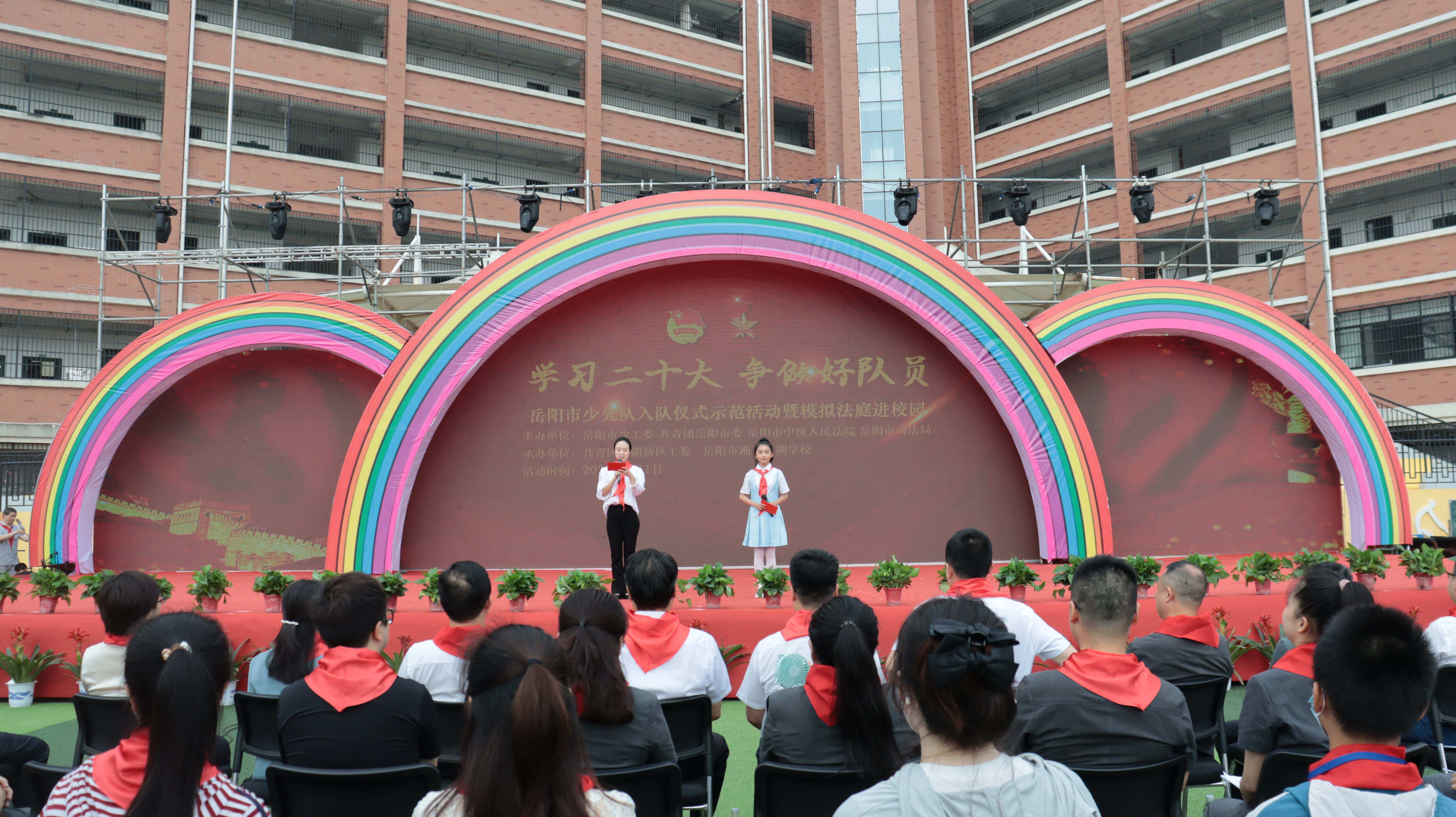 据悉,本次活动由少先队岳阳市工作委员会、共青团岳阳市委、岳阳市委政法委、岳阳市中级人民法院、岳阳市司法局联合举办举办,旨在深入学习宣传贯彻落实党的二十大精神,教育及激励广大青少年传承红色基因,涵养时代新风,砥砺优良品格,增强法治意识,在绚丽的新征程、在奋进的新时代向阳生长。