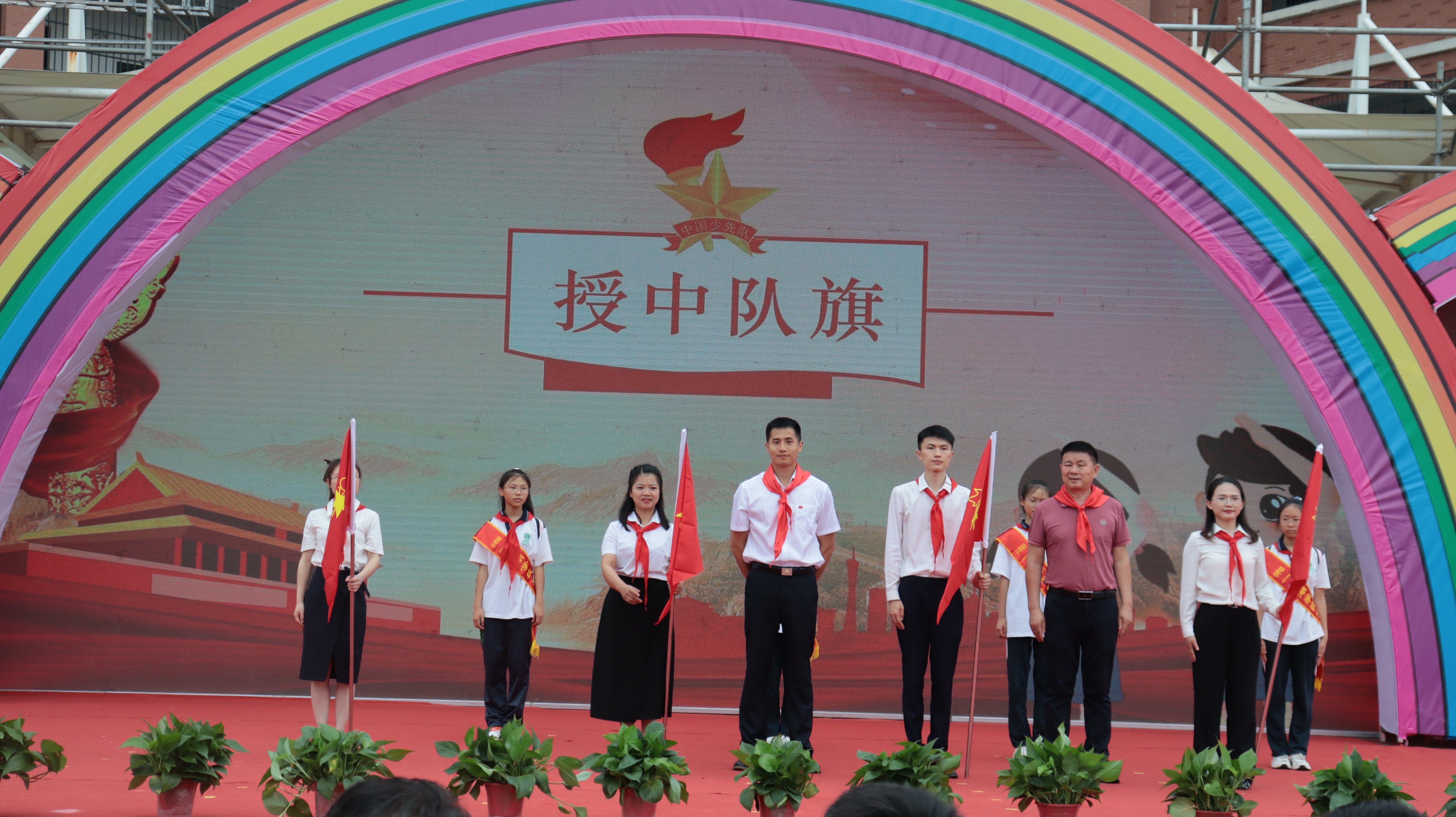 队旗猎猎指引方向,誓言铮铮引领成长。岳阳市少先队总辅导员何江海、学校少工委副主任黄志勇为新建中队授中队旗,湘一南湖大队辅导员带领新队员宣誓及呼号,“准备着,为共产主义事业贡献力量!”“时刻准备着”铿锵而坚定的呼号响彻校园,这是少队精神的理想传承,也是红色信念的延续。