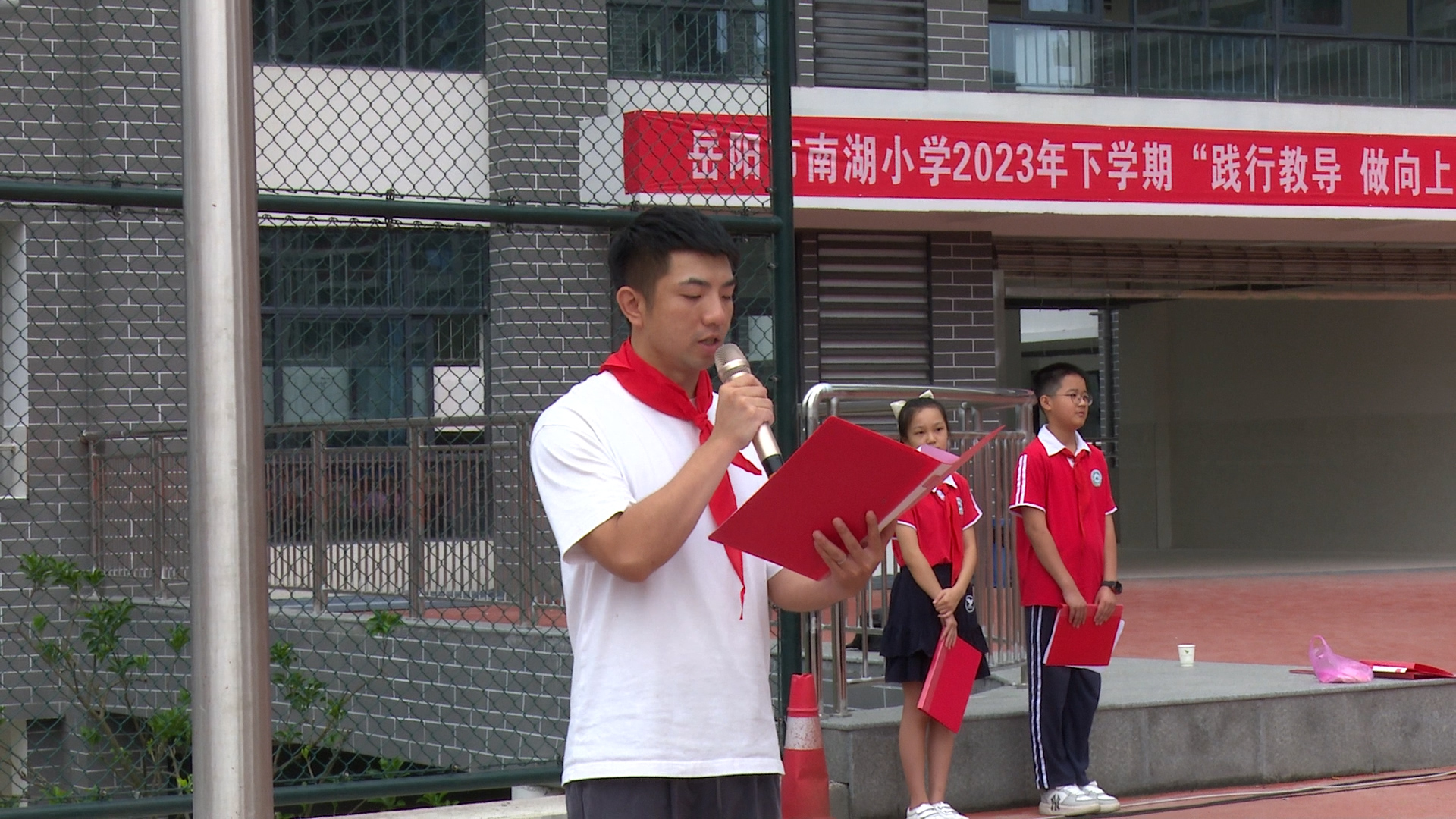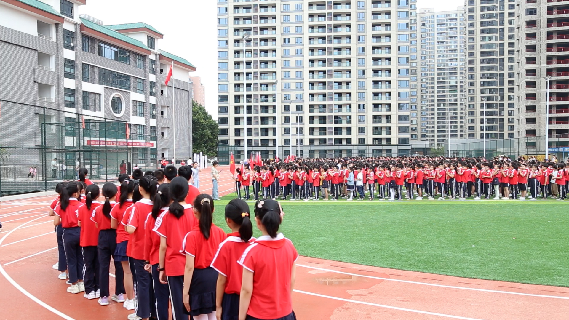 岳阳市红领巾电视台(记者:余心怡)9月4日上午,南湖小学的师生们齐聚校园,共同举行了南湖小学2023年下学期开学典礼“践行教导,做向上少年”主题升旗仪式暨安全教育月启动仪式。在雄壮激昂的国歌声中,国旗护卫队迈着整齐划一的步伐,护卫着鲜艳的五星红旗入场,红旗冉冉升起,全体师生庄严肃立,齐唱国歌。