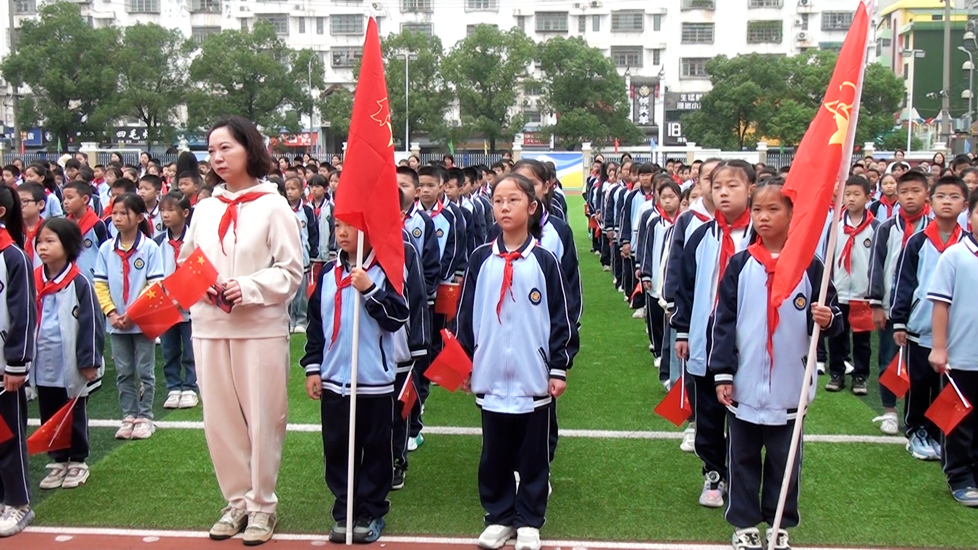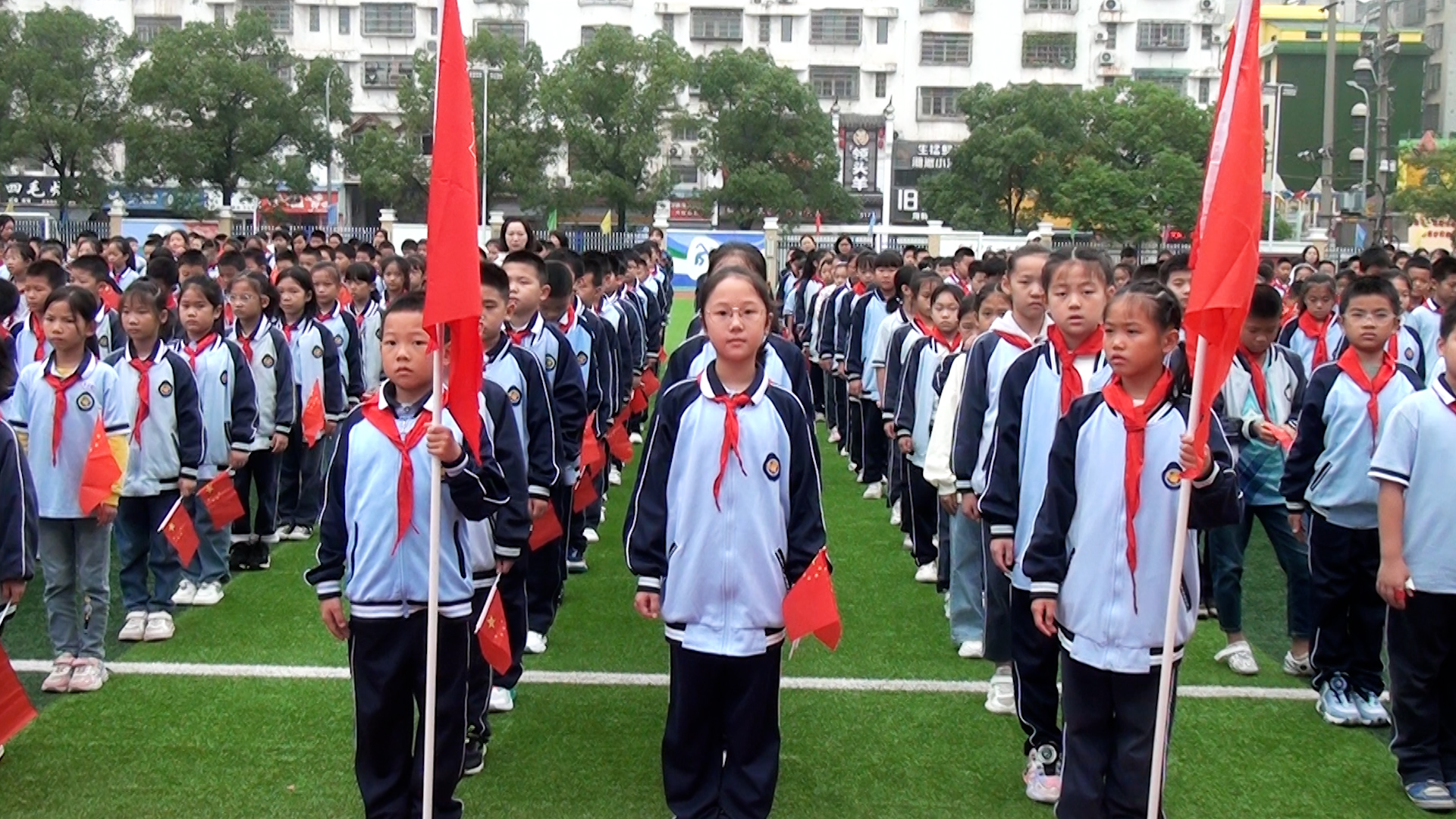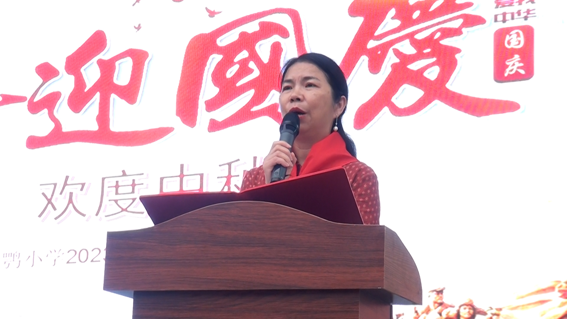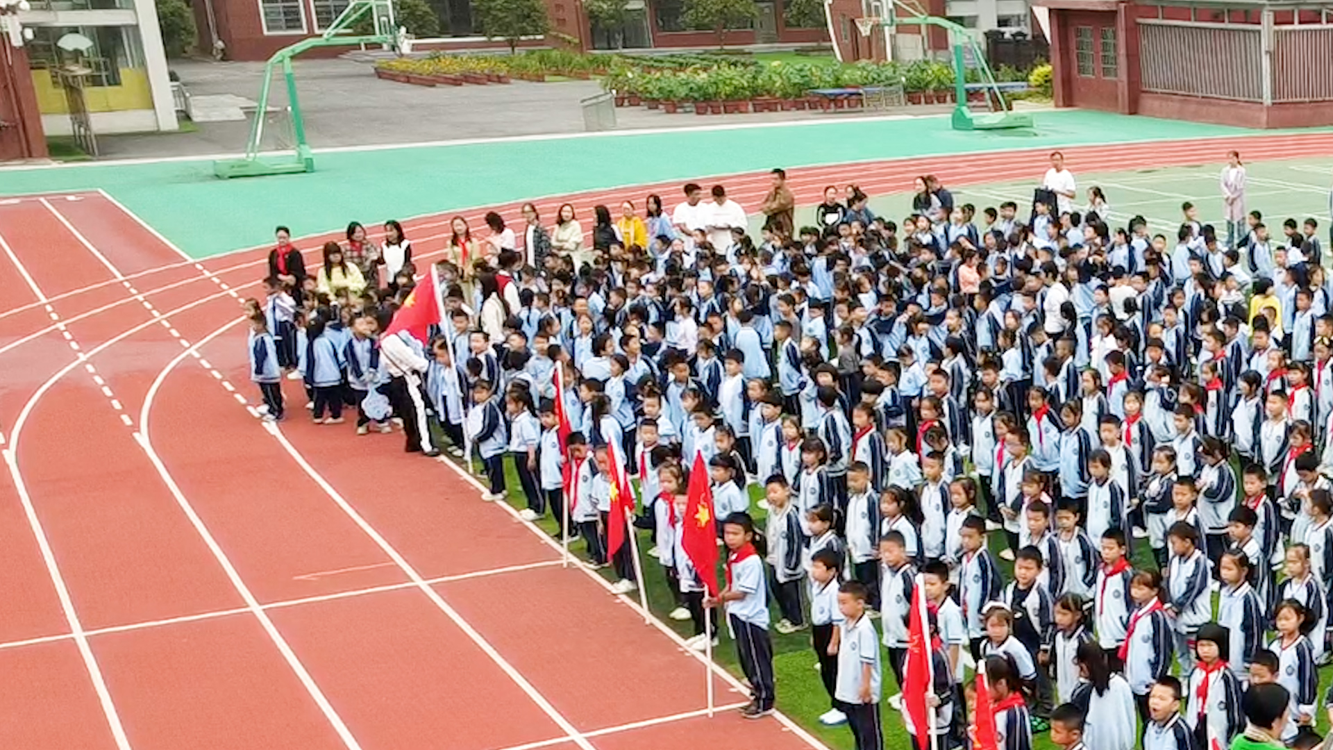 最后,全体师生挥舞着手中的红旗,在《我和我的祖国》歌声中,向祖国母亲送上了最美好的祝愿。