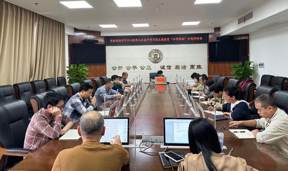 9月25日下午,中心在六楼会议室开展党组理论学习中心组第九次集中学习暨主题教育“以学铸魂”专题研讨会。中心党组书记、主任何四军主持并作总结讲话,市纪委驻发改委纪检组长高峰、中心党组成员、各部室负责人参加学习研讨。