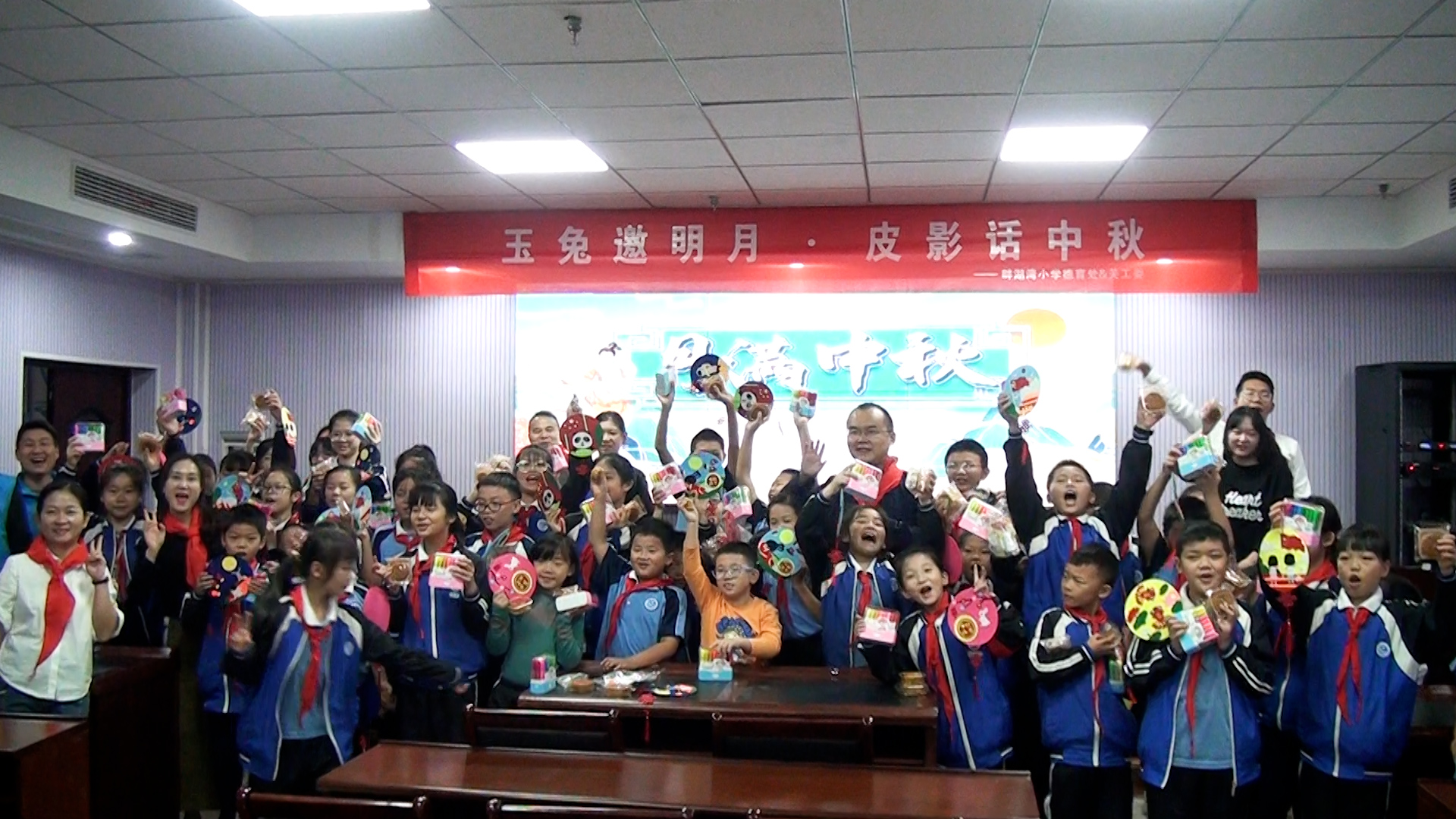 在活动现场,畔湖湾小学全体师生首先欣赏了德育处三位辅导员老师倾情演绎的皮影戏《嫦娥奔月》,在了解中国非物质文化遗产的同时,感受了中国神话故事的独有魅力。