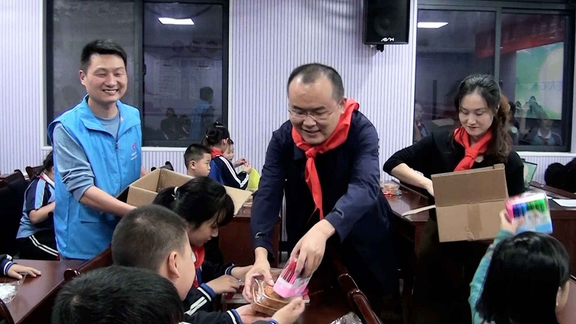 在活动的最后,畔湖湾小学的校领导、社区工作人员以及理工学院的志愿者们为同学们发放了为孩子们准备的月饼和文具礼品,同学们吃着甜滋滋的月饼,满脸笑意的期待着节日的到来。