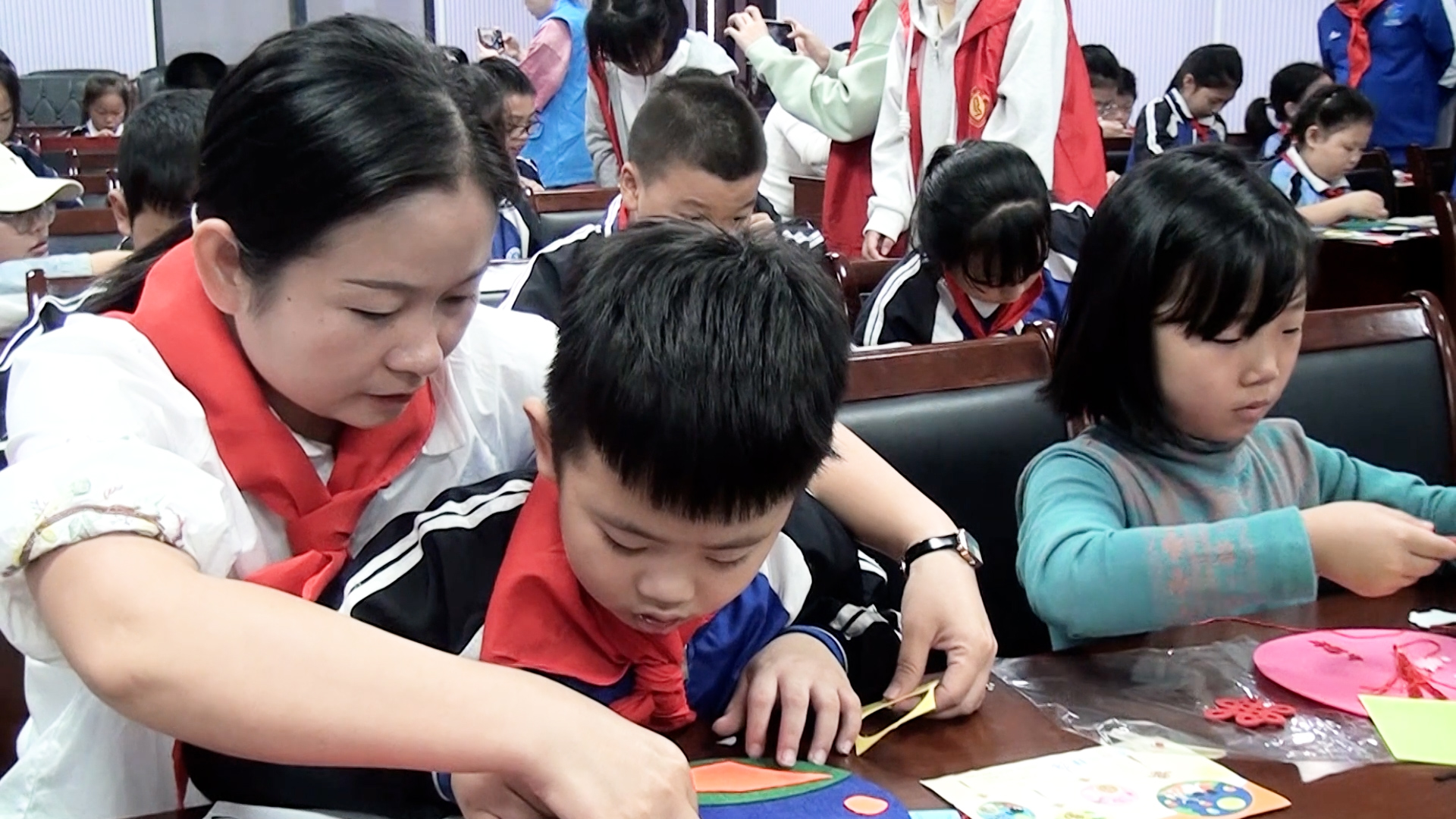 随后,同学们在老师与志愿者以及家长的带领下共同制作了以中秋节与国庆节为主题的手工织布挂件。在温馨的氛围中感受到了团圆的温暖,并用自己的小小心意表达出了对祖国最美好的祝愿。
