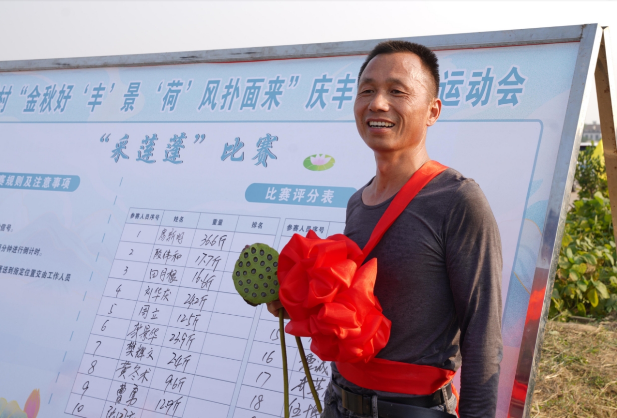 正是金秋好“丰”景,“和”风习习扑面来。在当日10月15日举行的荷花村金秋农民运动会上,当地村民通过无人机操作技能演示、收割机水稻收割竞赛,采莲蓬比赛等方式,庆祝水稻全域单产提升、粮食稳定增产,村民收入逐年增加。在响彻田野的的锣鼓声、呐喊声、欢呼声中,把丰收的喜悦写在脸上,响彻云端。(屈原融媒体 宋政军)