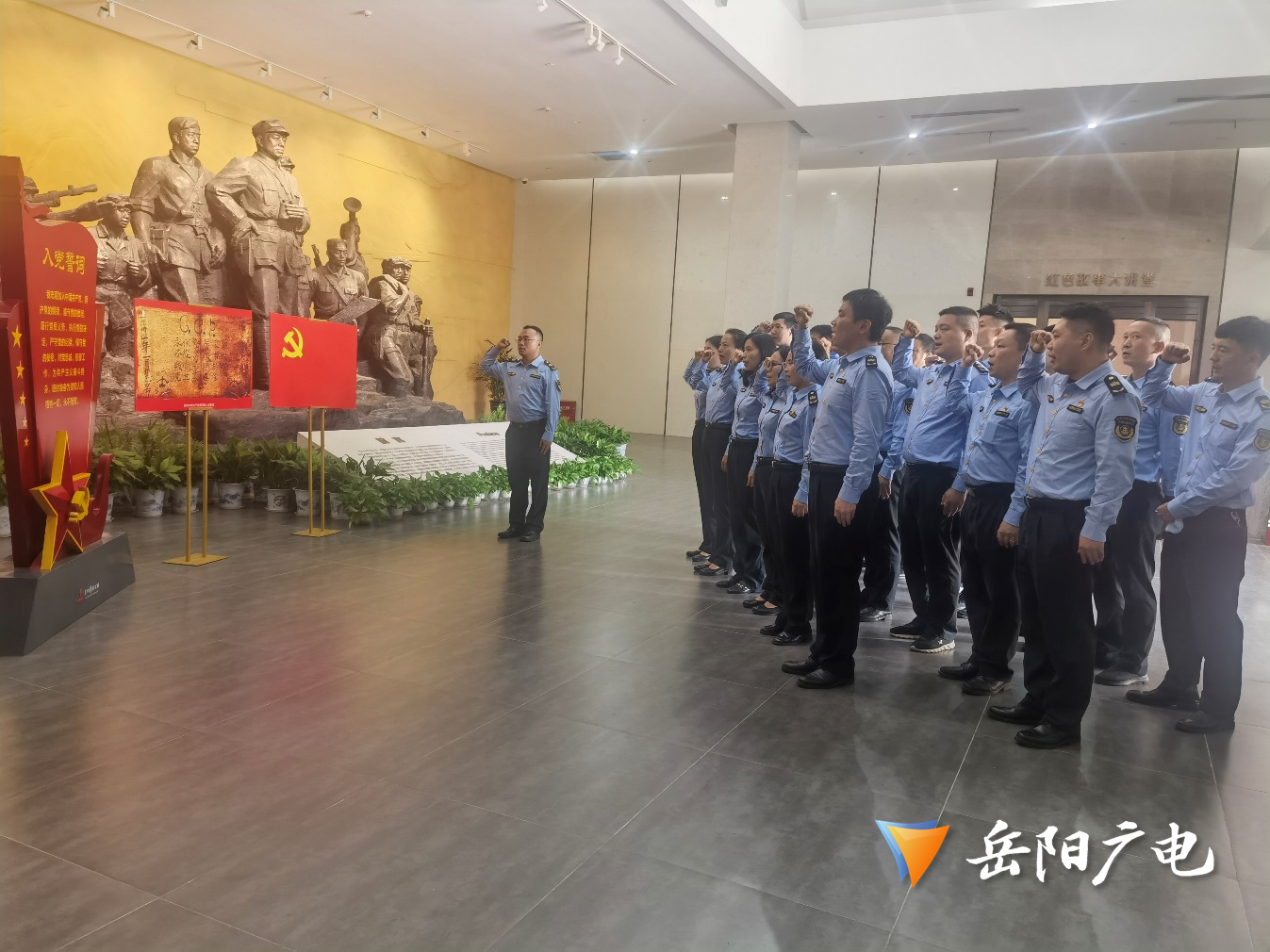 在平江起义纪念馆大厅,全体党员高举右拳,面向鲜红的党旗,重温入党誓词,以铮铮誓言彰显出坚定理想信念,强化责任担当,争做时代先锋的决心。