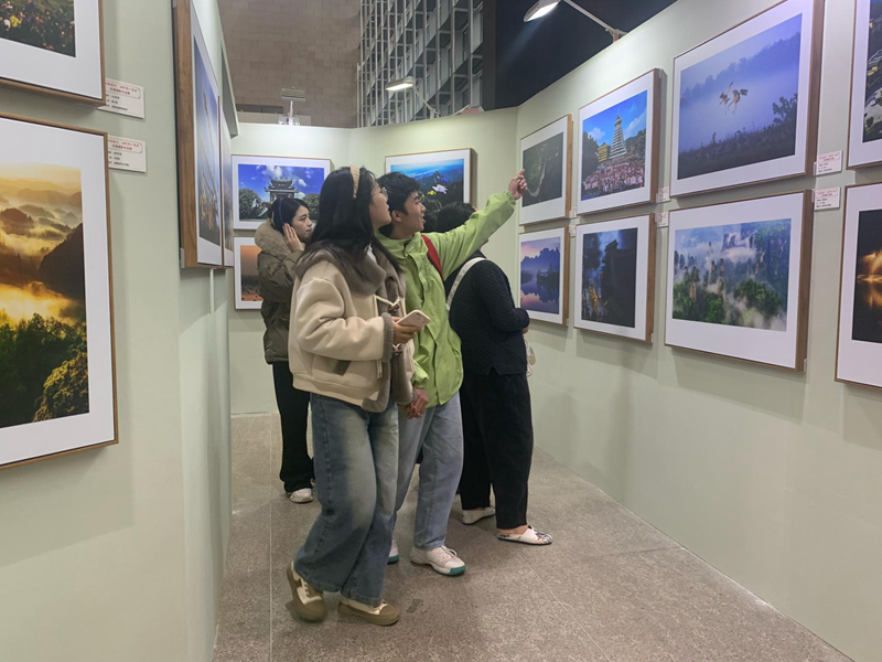 (观众驻足欣赏岳阳摄影家优秀作品)